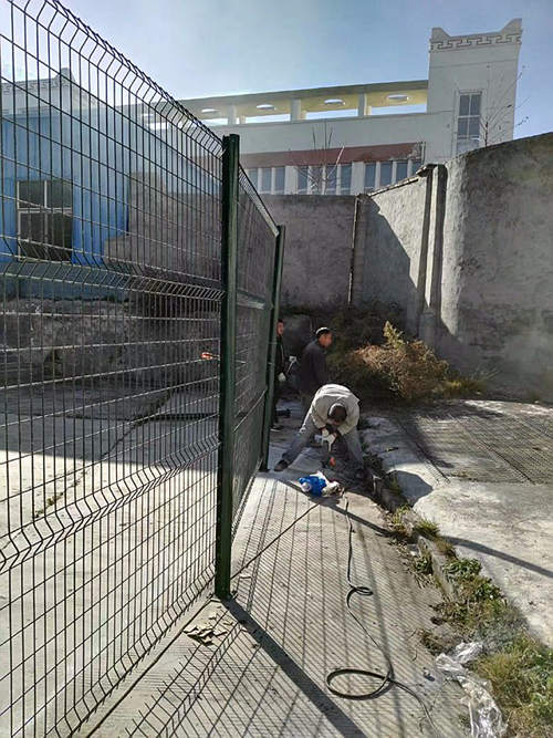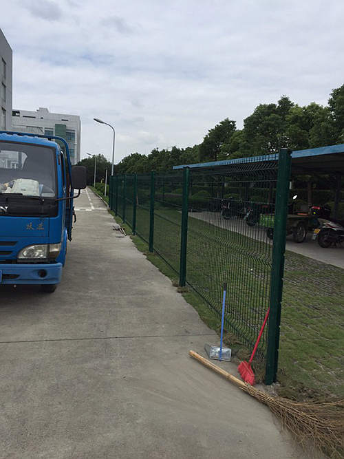 下圖是蘇州工業(yè)園區(qū)一家化工企業(yè)為區(qū)域分隔采購(gòu)的蘇州桃形柱護(hù)欄網(wǎng)安裝時(shí)拍攝的照片?蛻(hù)選擇的是桃形柱護(hù)欄網(wǎng),立柱用的100*70mm桃形柱,鋼絲直徑為浸塑后5.0mm,網(wǎng)孔間距為50*200mm,這批南京護(hù)欄網(wǎng)的立柱和網(wǎng)片均是墨綠色。