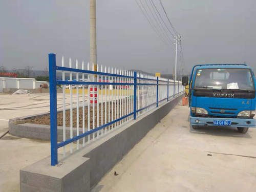 項(xiàng)目部采購的藍(lán)白色三橫桿鋅鋼護(hù)欄價(jià)格全部安裝完成